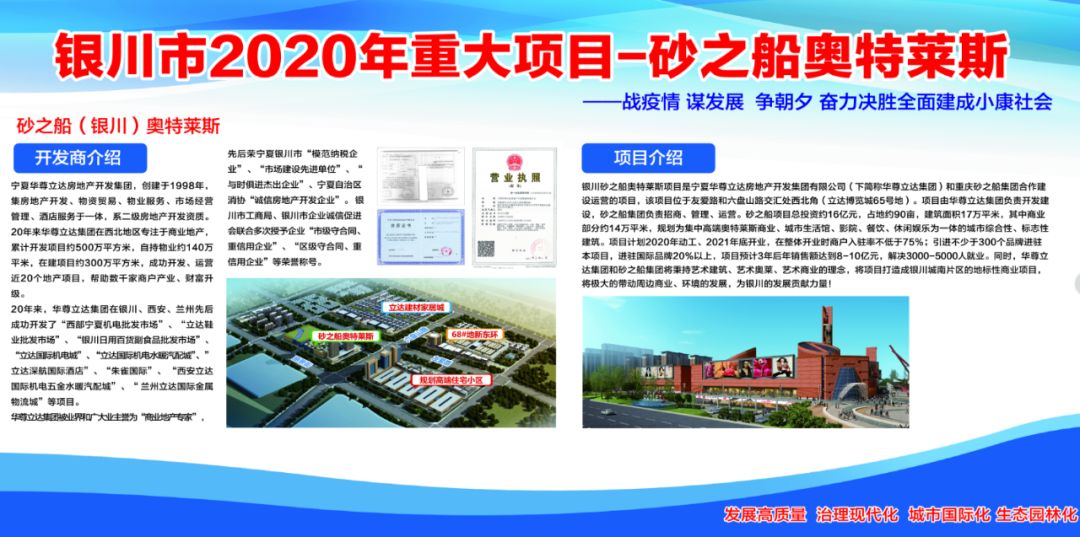 砂之船(銀川)奧特萊斯項(xiàng)目是銀川市2020年重大項(xiàng)目。項(xiàng)目由寧夏華尊立達(dá)房地產(chǎn)開(kāi)發(fā)集團(tuán)有限公司和重慶砂之船集團(tuán)合作建設(shè)運(yùn)營(yíng),該項(xiàng)目位于友愛(ài)路和六盤(pán)山路交匯處西北角(立達(dá)博覽城65號(hào)地)。項(xiàng)目由華尊立達(dá)集團(tuán)負(fù)責(zé)開(kāi)發(fā)建設(shè),砂之船集團(tuán)負(fù)責(zé)招商、管理、運(yùn)營(yíng)。