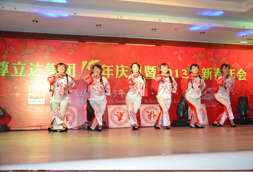 四位主持人華麗登場,為年會開篇明義,將華尊立達(dá)十五年的輝煌精華一一道來。隨后,集團(tuán)董事長張達(dá)上臺致辭,為2012年做總結(jié):2012年,集團(tuán)完成了多個項(xiàng)目的開發(fā)、啟動,并收獲了眾多的榮譽(yù)。全年完成竣工面積26萬多平方米,蘭州七里河項(xiàng)目完成了“甘肅機(jī)電五金綜合物流中心”的竣工驗(yàn)收試營業(yè)?!案拭C國際機(jī)電水暖城”四個標(biāo)段共17棟商鋪已經(jīng)全部完工?!傲⑦_(dá)國際汽配城”自奠基后,8月28日全面開工建設(shè),截止12月31日,A區(qū)四個標(biāo)段多層大部分順利封頂?!疤m州國際建材家居博覽城”一期,已完成了開工前的全部準(zhǔn)備工作,年后全面開工建設(shè)。